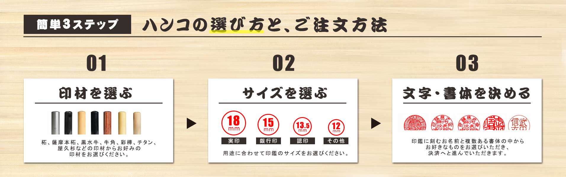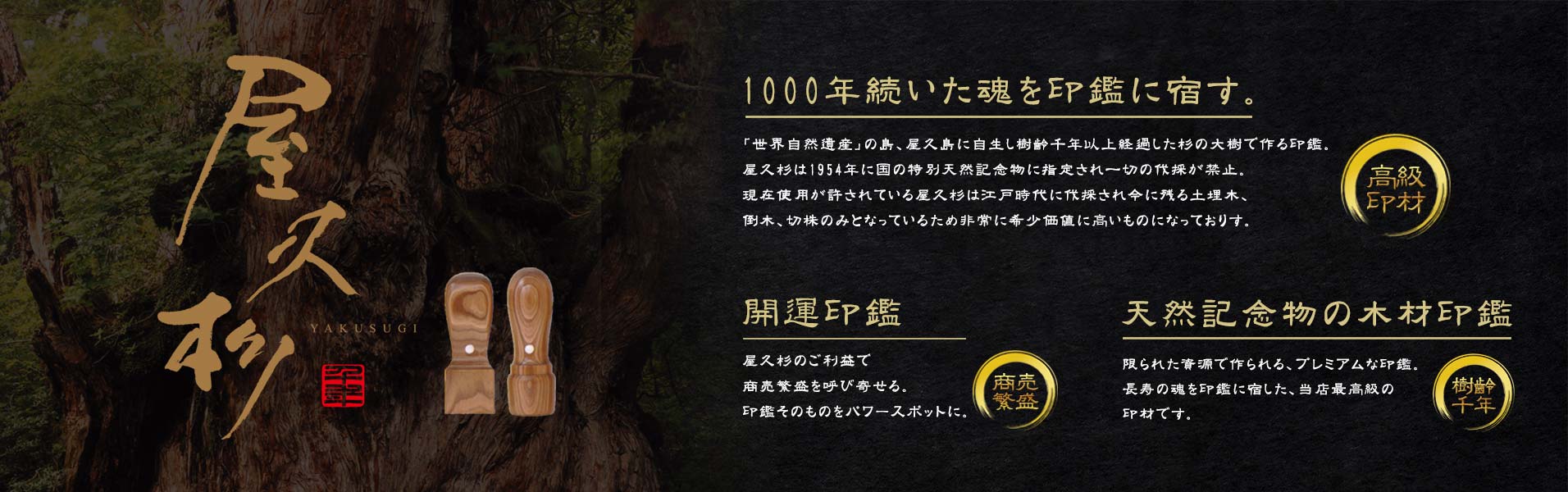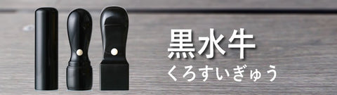 東南アジアからの水牛の角を材料にした素材です。黒光した印材で耐久性も優れており、昔から使われていて朱肉との相性がよいのも人気の理由です。近年では家畜用とされていた水牛が減りつつありますので、貴重な印材として注目されております。
